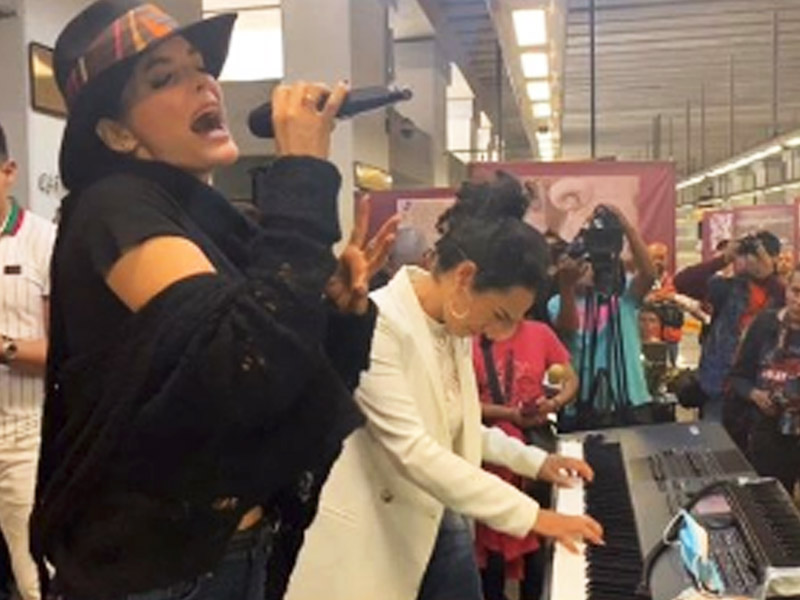Flor Amargo y Ana Bárbara se animaron a recordar cómo fueron los primeros años de lucha en el entretenimiento ofreciendo su canto a más de un centenar de usuarios que transbordaban en la estación del Metro Zapata de la Línea 12.
